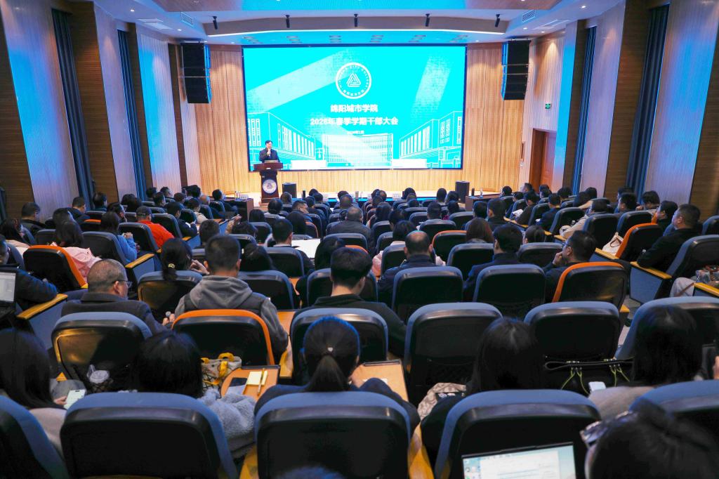 2月28日,绵阳城市学院2026年春季学期干部大会在游仙校区守正书院会堂隆重召开。副校长何礼果主持会议,全体校领导及中层干部参会。会上,校长林秀英以《凝聚共识锚定新蓝图齐心协力决胜关键年》为题作了2026年度...