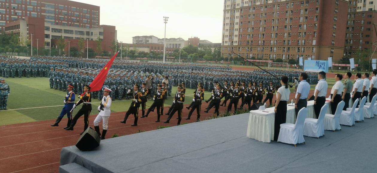 把国防教育融入办学治校的全过程是学校一直坚持的育人准则。学校将国防素养培育贯穿到人才培养方案制定、课程体系构建、实践活动开展、校园文化营造的每一个环节,让国防情怀成为师生成长的精神底色:通过军事技能训练开启第一堂国防课,《军事理论》作为公共必修课纳入学分管理,确保每一位学生都筑牢国防认知;退役士兵的“传帮带”更是学校国防教育的活教材,学校将他们编入国旗护卫队、校卫队,每周清晨的升旗仪式上,他们挺拔的身姿伴着朝阳升起,是最生动的国防教育,校园安全巡逻、应急演练等场景中,他们总能第一时间冲锋在前,用亲身经历传递责任与担当。