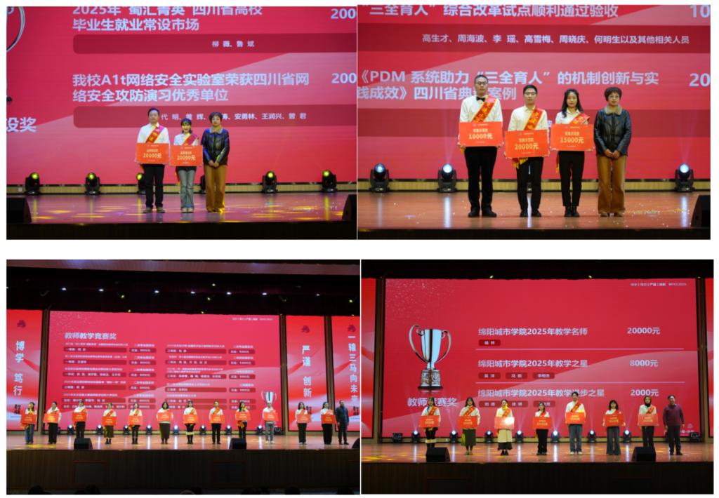 过去一年,学校以品牌建设为引领,以改革创新为动力,在教育事业发展的道路上稳步迈进,留下了诸多闪光印记。为表彰先进、树立榜样,凝聚“学习先进、争当先进”的奋进力量,大会对2025年度在教学创新、品牌建设、协同育人、服务保障等领域表现突出的142个先进团体和个人进行隆重表彰,现场为59名教职工代表颁奖,并发放近百万元绩效奖励。此次表彰充分彰显了学校对教育教学实绩的高度重视,进一步激发了全体教职工干事创业的积极性与主动性。