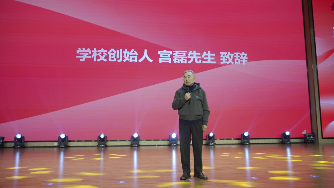 大会伊始,学校创始人宫磊先生发表致辞。他首先向全体教职工一年来的辛勤付出致以诚挚谢意,全面回顾了2025年学校在学科建设、人才培养、科研创新等领域取得的显著成就,并为学校2026年的发展指明方向。宫磊先生强调,新的一年,全体教师要以项目制教学为抓手,着力提升学生实践能力与就业竞争力,深耕产教融合赛道,将行业前沿需求融入教学设计,以真实项目搭建“学用转化”桥梁,让学生在解决实际问题中锤炼专业本领、明晰职业规划;广大教职工要坚守教育初心,既要当好传道授业解惑的引路人,更要做好学生成长成才的陪伴者,密切关注学生思想动态与综合素养提升,用爱心、耐心与责任心浇灌每一位绵城学子的梦想,在立德树人的征程上勇毅前行,共同续写绵阳城市学院教育事业的新辉煌。